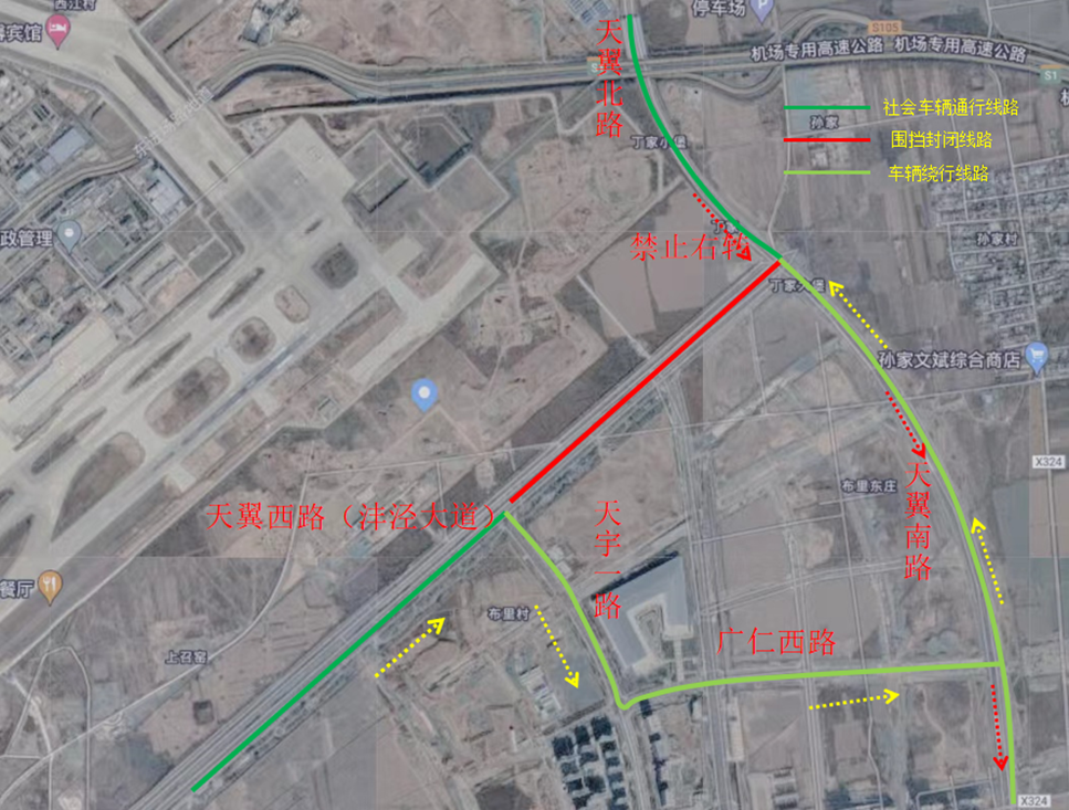 因空港新城沣泾大道-机场专用高速-T5航站楼交通枢纽工程项目建设,为降低项目施工给市民通行带来的不便,确保社会车辆和群众通行安全,将对天翼西路实施全封闭施工,现公告如下: