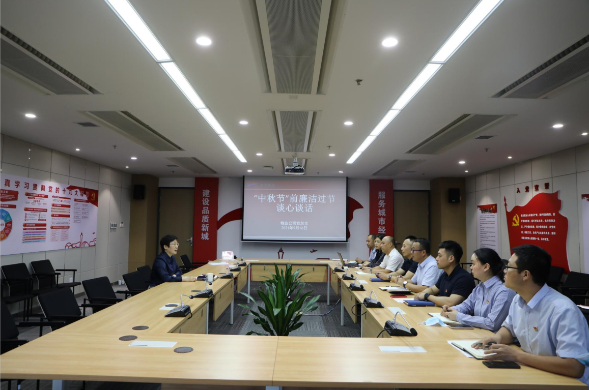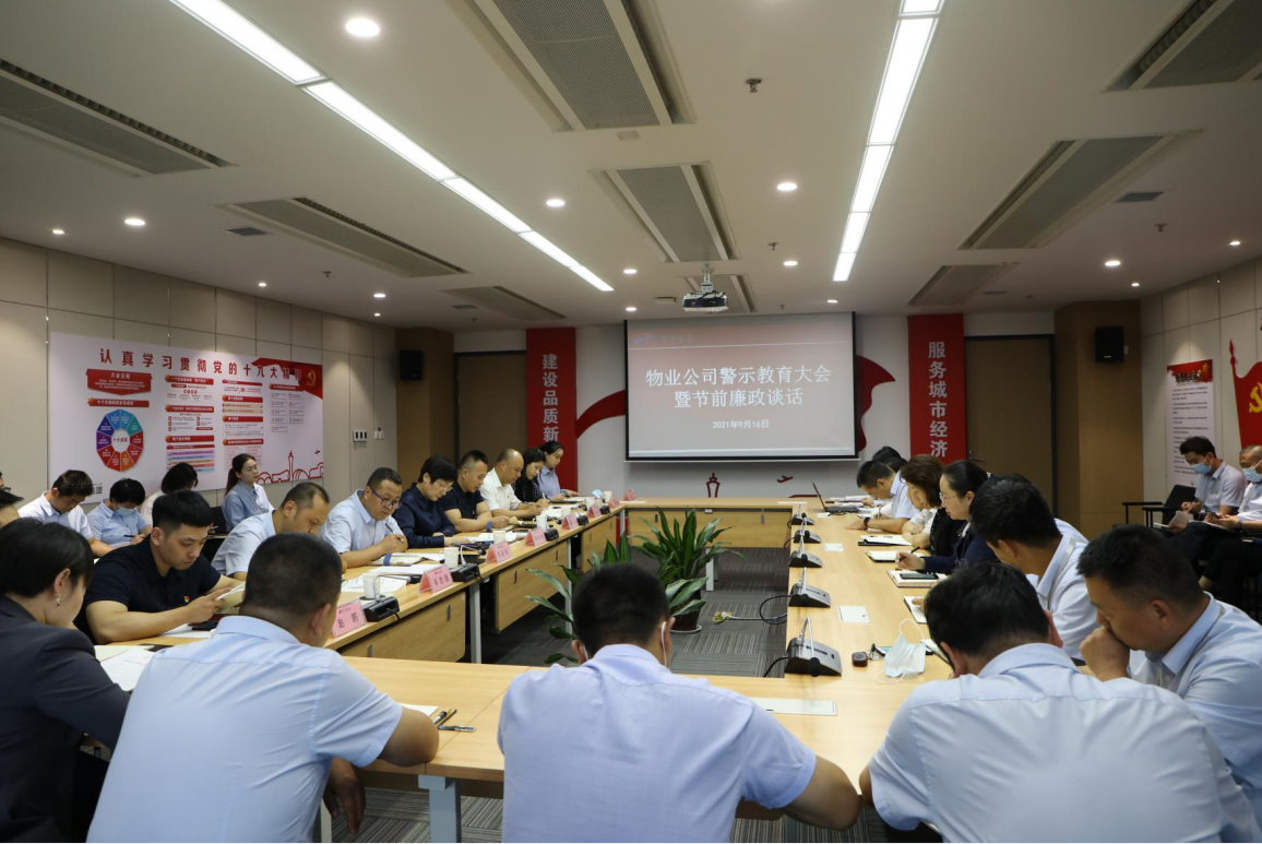 2021年中秋将至,为持续深入做好纪律教育和监督工作,加强作风建设,营造风清气正的节日气氛,9月16日,空港物业公司党总支组织召开警示教育大会暨节前廉政谈话会议,党总支书记李绚绚主持并讲话,公司各部门、各项目、各子公司党员干部员工40余人参加会议。