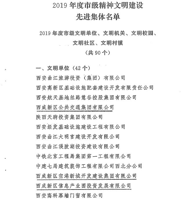 在举国上下喜迎建国71周年之际,空港集团喜获西安市2019年度精神文明建设先进集体,被西安市委、市政府授予市级文明单位称号。