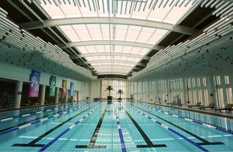 空港新城运动中心共分为两期,一期总面积约5100平方米,设有篮球馆、羽毛球馆、网球馆、乒乓球馆等。运动中心二期集游泳、健身、培训及娱乐功能为一体,由游泳馆及健身楼组成,总建筑面积约6100平方米。所有场馆均按专业标准建设,游泳池赛道更是达到国际顶级标准,各类健身器材品质一流。独特的设计理念和高端的配置,让运动中心成为集现代简约与时尚艺术为一体的高端、绿色、生态的新型竞技健身场馆,力争将“时尚运动”的理念传递给每一位运动爱好者。
